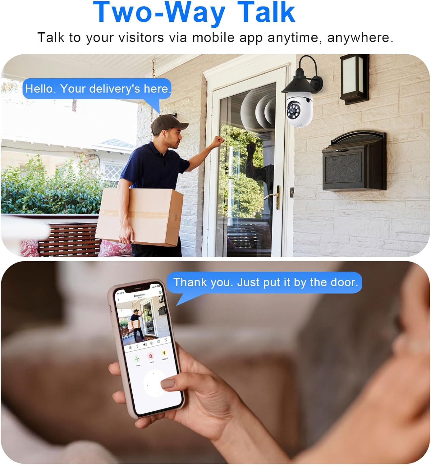 Olvídate de cables, taladros o técnicos. Solo enrosca la cámara en un casquillo E27, conéctala a tu red WiFi (2.4G o 5G) y contrólala desde tu celular en segundos.