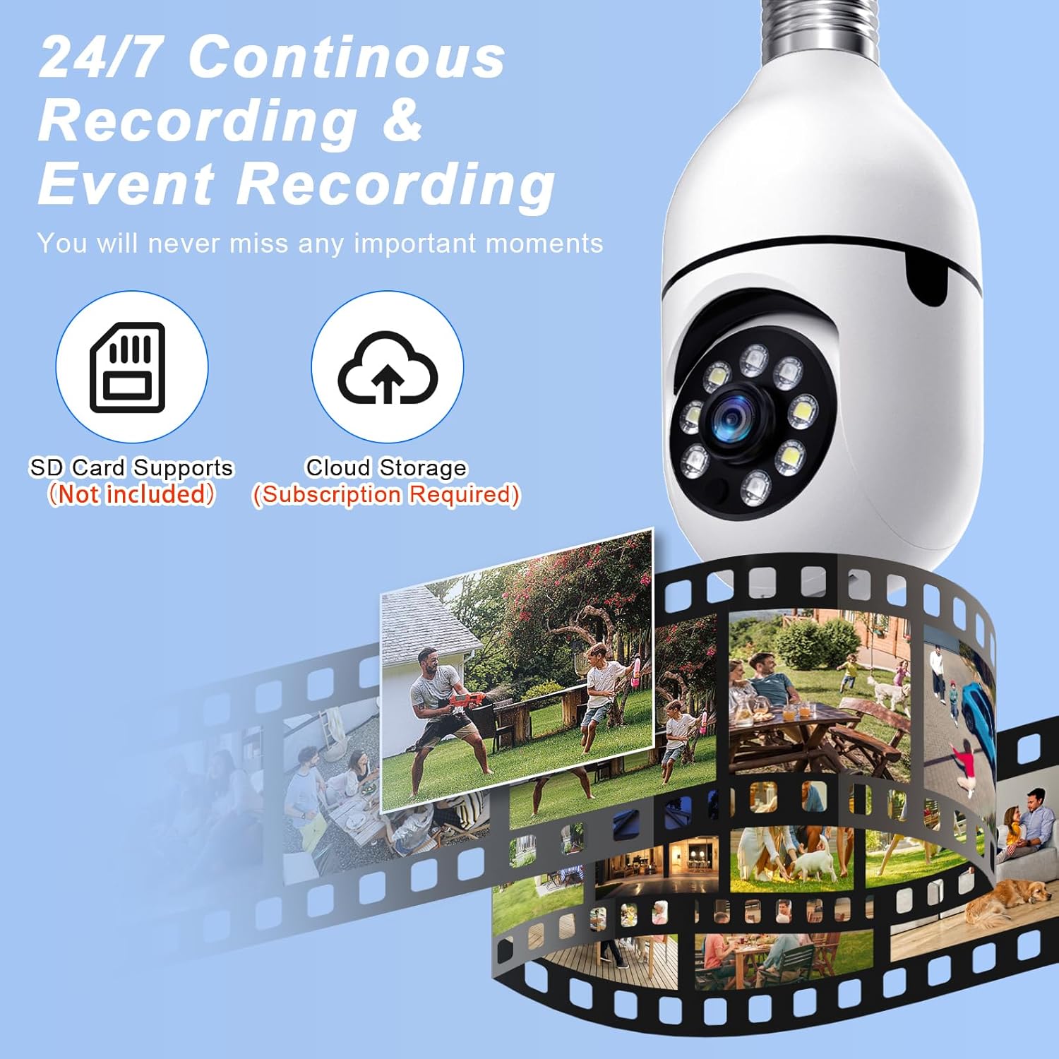 La cámara Noonkey está diseñada para ser plug & play: solo debes atornillarla en un casquillo de luz E27 estándar y conectarla desde tu teléfono mediante Bluetooth y WiFi (2.4GHz o 5G). No requiere herramientas, cables ni conocimientos técnicos.