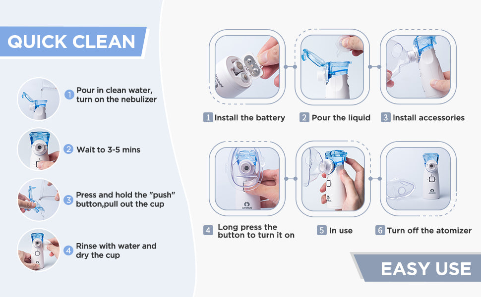 Es muy fácil. Incluye modo de autolimpieza, que se activa manteniendo presionado el botón durante 5 segundos, ayudando a evitar obstrucciones y mantener una nebulización eficiente.